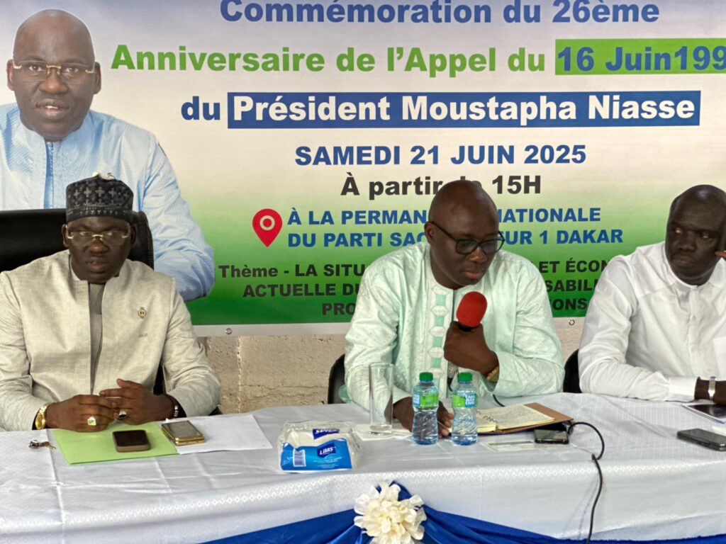 Lors de la célébration du 26 anniversaire du Parti Alliance des Forces du Progrès (AFP), le nouveau secrétaire général dudit parti, Mbaye Dione est revenu sur les raisons qui avaient poussé Moustapha Niasse à lancer un appel qui avait donné naissance au parti des progressistes. « Nous sommes réunis aujourd’hui, samedi 21 juin 2025, pour commémorer un événement fondateur : l’Appel du 16 juin 1999, lancé par Monsieur Moustapha NIASSE, un appel qui a donné naissance à notre formation politique, l’Alliance des Forces de Progrès (AFP). Un concours de circonstances fait que cet anniversaire coïncide cette année avec une période charnière pour notre pays. Vingt-six ans après, les mots de Moustapha Niasse résonnent avec une pertinence étonnante face aux défis actuels du Sénégal, dirigé par un nouveau pouvoir.