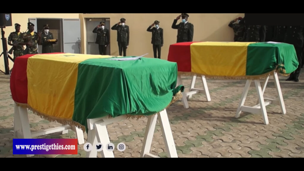 Il s’agit des sergents chefs Mamadou Kalidou Diallo (3e Bataillon d’infanterie) et El Hadj Boubacar Ba (34e Bataillon d’infanterie). La cérémonie funéraire s’est déroulée à l’hôpital militaire de Ouakam en présence des autorités militaires du pays et des membres des familles éplorées.