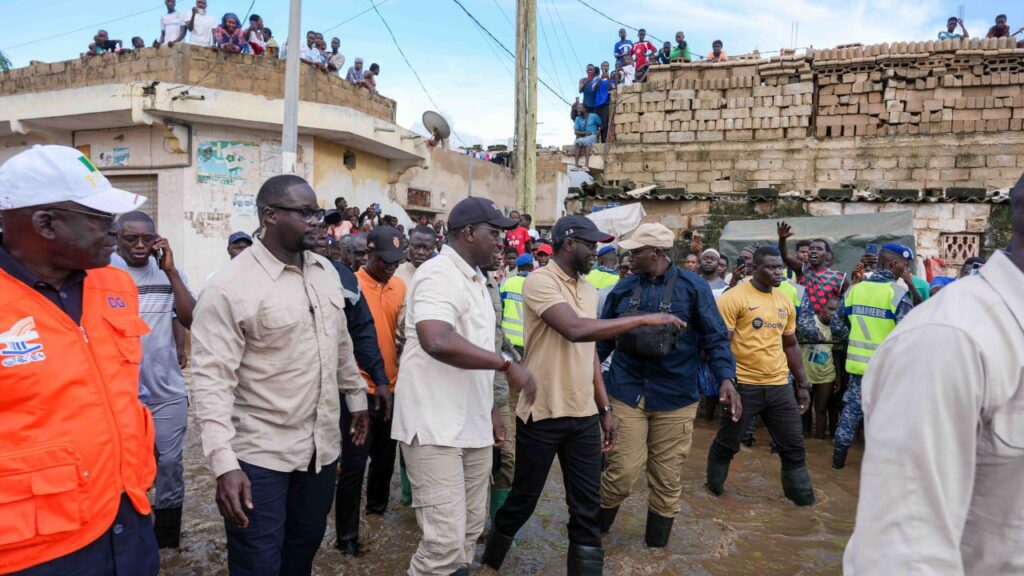 Aujourd’hui, le Président de la République s’est rendu à Thiaroye-sur-Mer et aux Parcelles Assainies – Unité 24 pour rencontrer les populations durement éprouvées par les inondations et l’avancée de la mer.