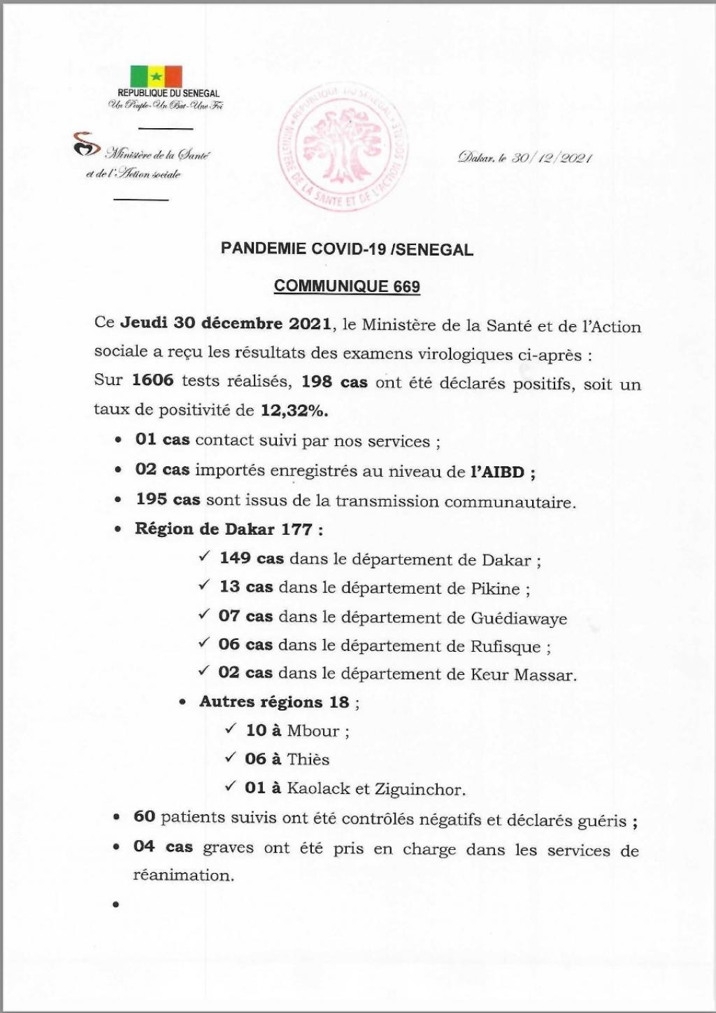 Coronavirus au Sénégal – Point du Jour : 198 contaminations enregistrées ce Jeudi