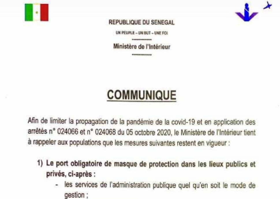 - Lutte contre la Covid-19 : Les nouvelles mesures prises par le ministre de l’intérieur (DOCUMENT)