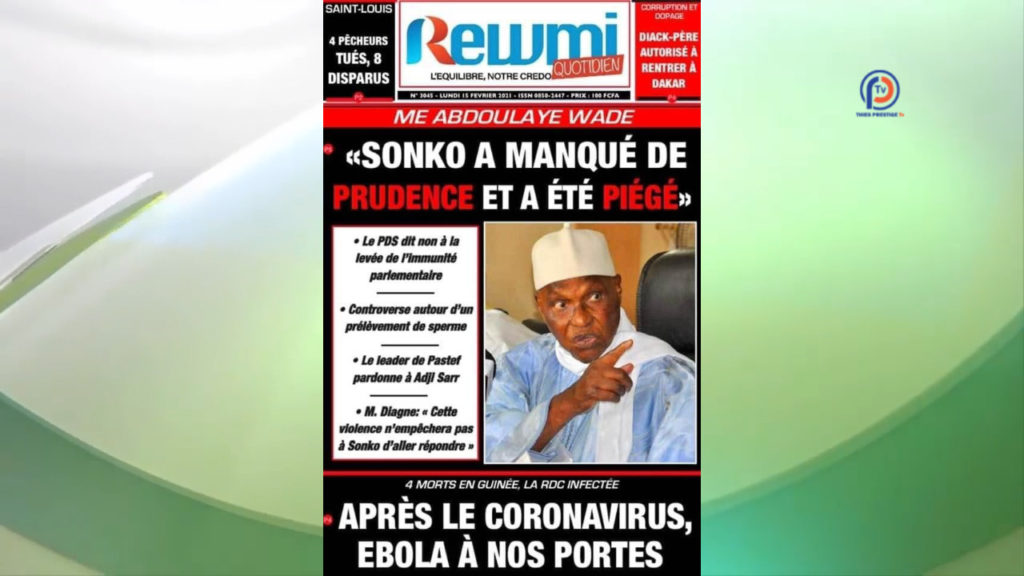 ’’Me Wade flaire le piège contre Ousmane Sonko’’, selon La Tribune qui se fait écho de ces propos de l’ancien président de la République et Secrétaire général du Parti démocratique sénégalais (PDS, opposition) qui affirme : ’’J’ai le sentiment qu’il a manqué de prudence et a été piégé’’.