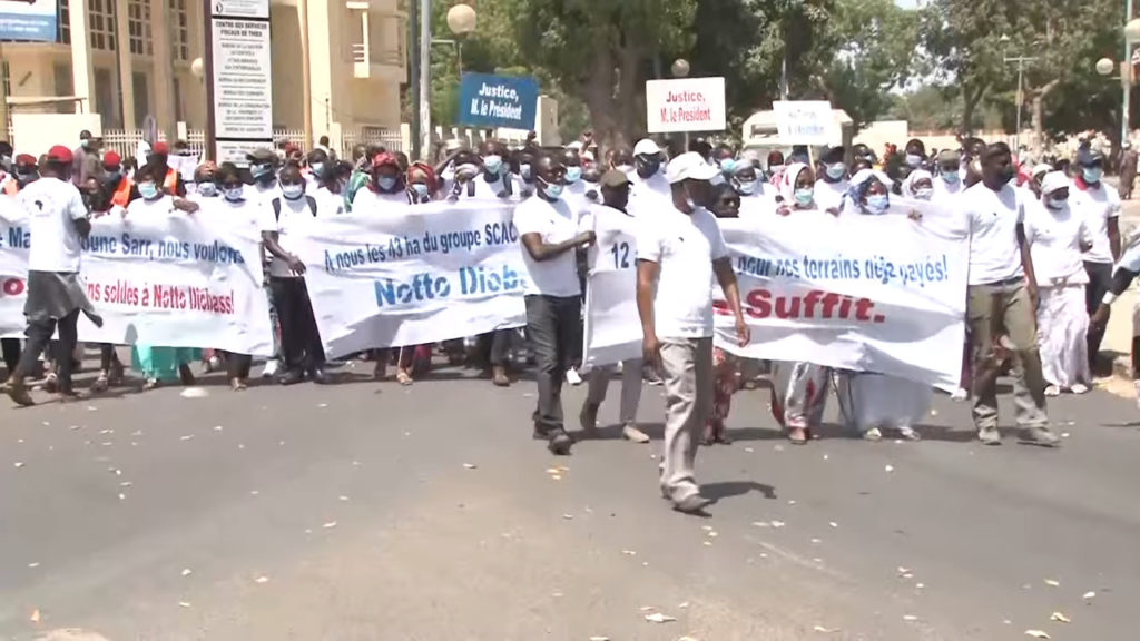 Au total, plus de 2 milliards de FCFA ont été encaissés sur 700 personnes résidant au Sénégal et à l’étranger selon le collectif des victimes qui a manifesté ce mardi à Thiès. « Nous sommes des victimes d’un promoteur immobilier dénommé dont le groupe s’appelle scac Afrique. Il nous avait vendus des terrains à travers tout le Sénégal et plus particulièrement dans le site de Mbomboy situé dans la commune de Notto Diobass dirigé par le maire Alioune Sarr, qui ,depuis qu’on a eu des difficultés avec ce promoteur n’a jamais voulu nous recevoir ne serait ce qu’une seule fois .