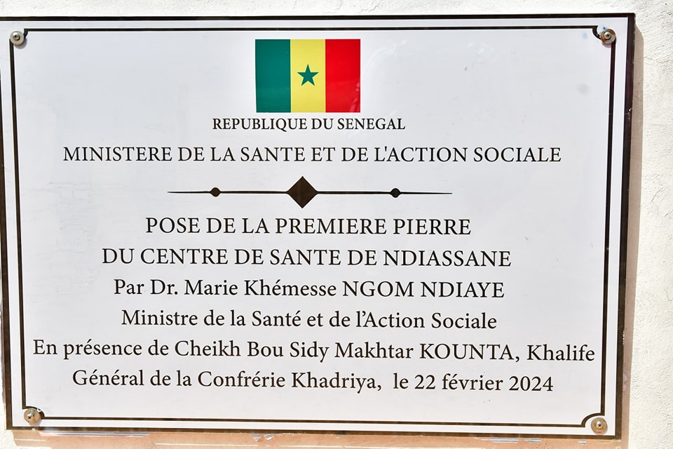 Cérémonie de pose de la première pierre du centre de santé de Ndiassane par le Ministre de la Santé et de l’Action sociale Dr Marie Khemesse Ngom Ndiaye, en présence de Cheikh Bou Sidy Makhtar Kounta Khalife général de Ndiassane.