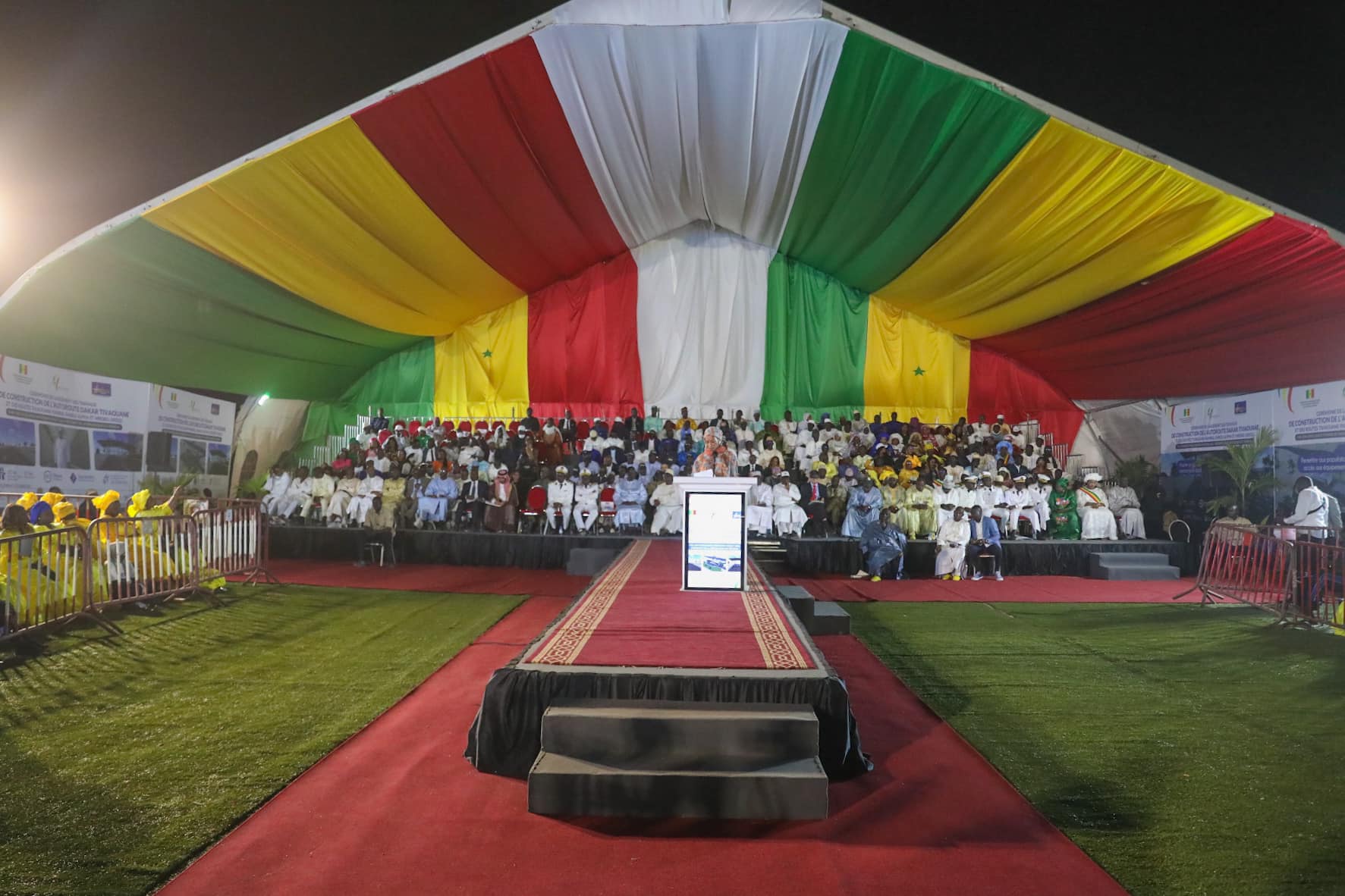 Le Président de la République Macky SALL a pris part, vendredi après-midi, à Tivaouane à la cérémonie de lancement des travaux de bitumage du tronçon Darou Alpha-Pambal-Tivaouane, de réhabilitation de la route Mboro-Diogo et du premier maillon de l’autoroute Dakar-Tivaouane-Saint Louis.
