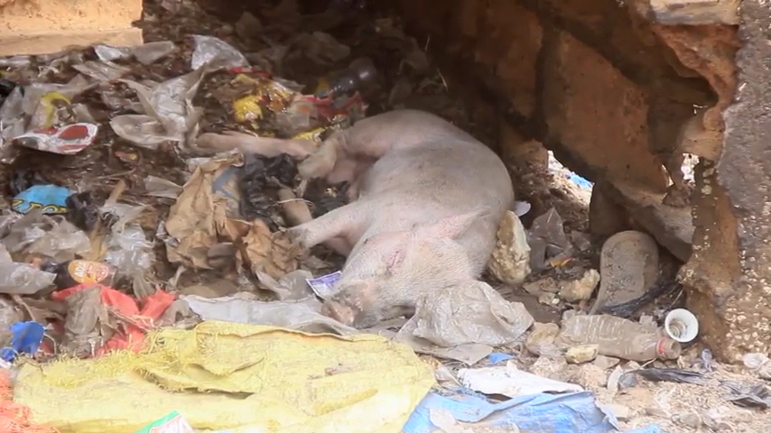 Thiès – Au marché Khelcom , vendeurs et porcs cohabitent ensemble