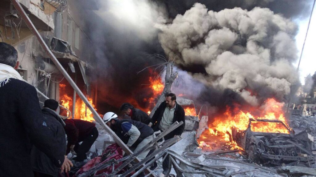Medical personnel look for survivors following a reported airstrike on the Tariq al-Bab district of the northern Syrian city of Aleppo on February 1, 2014. Syrian government and opposition delegations leave 10 days of peace talks with few results and a follow-up meeting uncertain, but analysts and negotiators say the discussions are an important beginning. AFP PHOTO/Mohammed Al-khatieb
