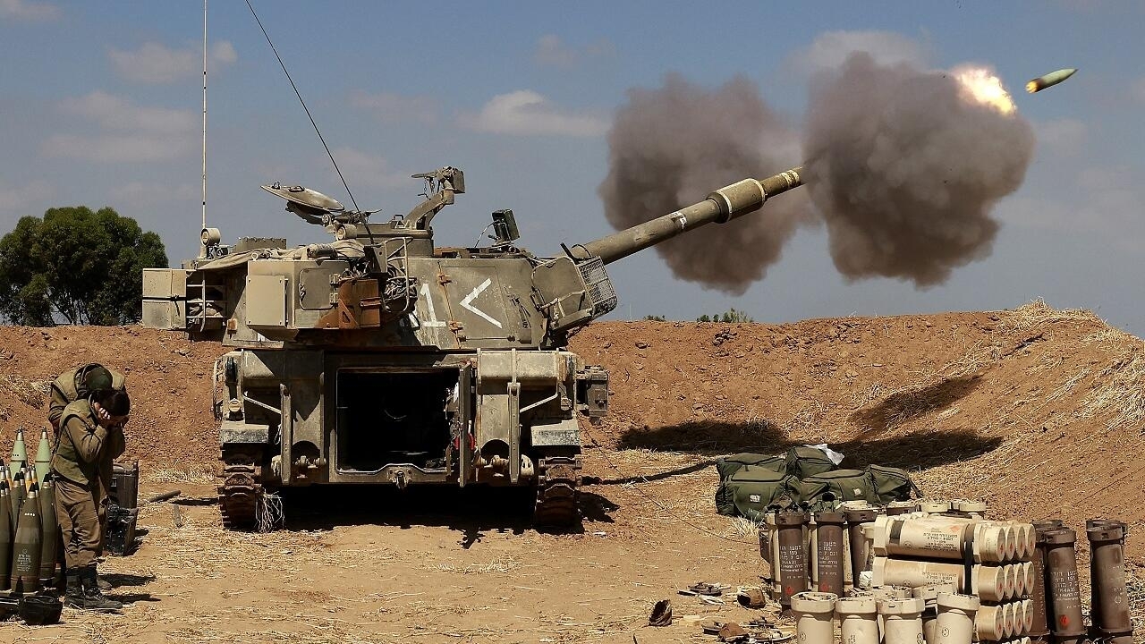 Israeli soldiers fire a 155mm self-propelled howitzer towards the Gaza Strip from their position near the southern Israeli city of Sderot on May 13, 2021. - Israel faced an escalating conflict on two fronts, scrambling to quell riots between Arabs and Jews on its own streets after days of exchanging deadly fire with Palestinian militants in Gaza. (Photo by Menahem KAHANA / AFP)