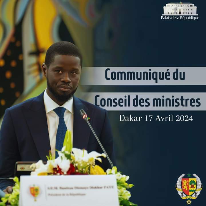 Voici le compte rendu du Conseil des Ministres du Mercredi 17 Avril 2024